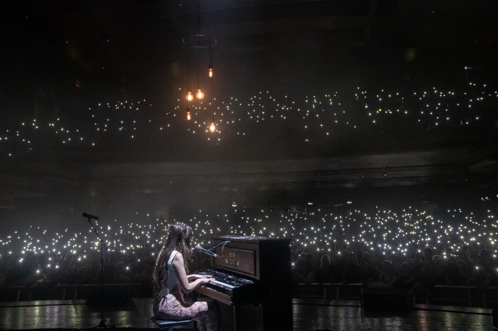 Even beyond the bed and smoke, the lighting was stunning. Dozens of bare, golden bulbs hung above the stage, spectacularly kicking in on the chorus of Guiltless, filling the room with the aura of a perfect sunset. The most awe-inspiring moment of the night, however, came when dodie took to the piano for Sorry, a soaring, strings-led ballad. Just as the violins reached the apex of their melody, a dense stream of petals fell down onto dodie, glistening in the spotlight and nestling in her hair like snow. Visually, it was an unbelievably beautiful surprise. As a match for Sorry, it was an inspired decision from dodie and her team.
