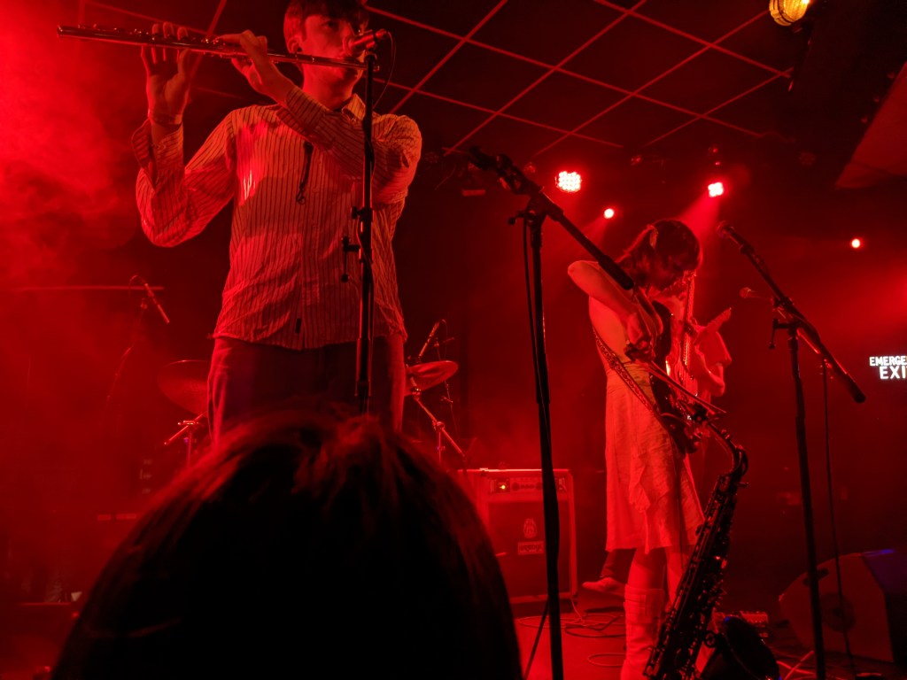 What made this gig in particular so exciting was the feeling that BC,NR seem capable of much bigger venues. Their debut album For the first time rapidly earned them a passionate core following of on the pulse young post punk and jazz fans, and the acclaim only grew with February’s unbelievable and more radio friendly Ants From Up There, an album venerated by just about every music critic in the land. Take your pick of any national newspaper, the chances are they gave Ants From Up There all five stars, and deservedly so. It was seemingly all going so smoothly for the Cambridge band until days before that album’s release, when frontman Isaac Wood abruptly left the band, citing mental health difficulties. Just as they were reaching their all time high, it looked like it might all come crashing down on BC,NR. Every song that they had built their career on so far was rendered unperformable in the absence their idiosyncratic lead vocalist. Ants From Up There is a devastating listen as it is, but the fact that such a popular masterpiece will never reach the stage added a piercing undercurrent of tragedy. Planned shows – including several gigs in the US plus a visit to Leeds – were suddenly cancelled, Covid-style. Announced last month, this modest UK tour was billed as an intimate warm-up to a summer of festivals across Europe, and an opportunity for the band to regroup and road test an hour long set of completely new music before taking it to the continent and eventually the recording studio. Joe and I may have been disappointed about missing out on hearing material from the albums we both so loved (I’m convinced Basketball Shoes would have been nothing short of life-changing live), but instead the gig at the Brudenell offered an almost as riveting showcase of what might come next for BC,NR.