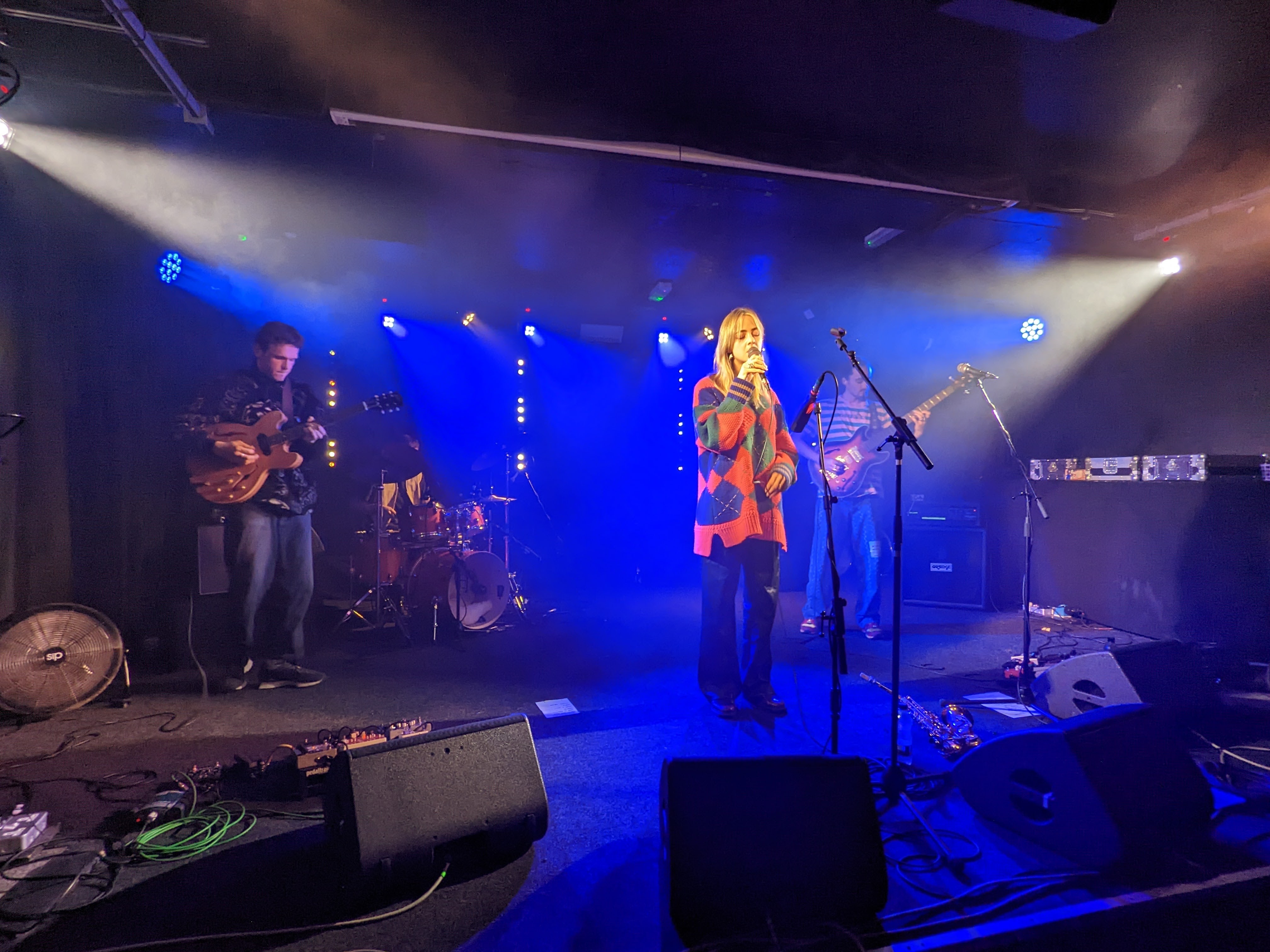 Wald-Harding’s career in music may just be dawning, but a one-off homecoming concert in the cosy Wardrobe successfully pulled in an encouraging crowd of local fans already well aware of her talents. Her set may have lacked familiar tracks, but there were plenty of highlights to get excited about for 2023, with What You Wanted an assured and instantly danceable opener. On this and many other songs, Wald-Harding’s skill as a musician was more than matched by the trio of Guildhallers that completed the band, in particular laser-focussed drummer Tom Potter, whose complex, nuanced funk grooves managed to be engaging but never obnoxiously technical, a feat not all of jazz drummers can pull off. Solos were dished out liberally amongst the band, and it was guitarist Toby Daintree provided the standout improvisation of the bunch with his restless riffing over strutting Pigeon Park.