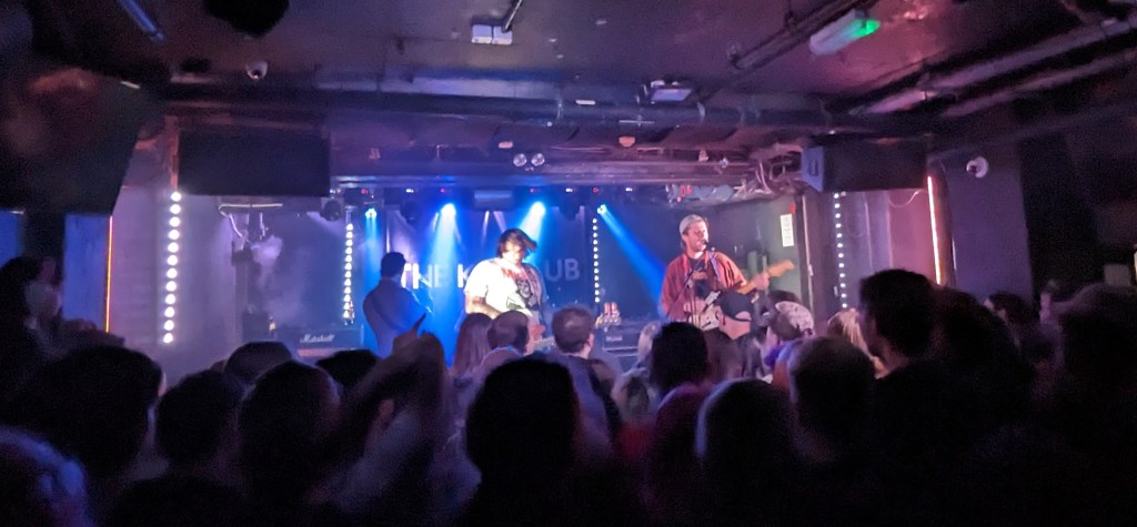 The Key Club brought a nice familiarity for us (we’d even both played an early Ewy gig on the Key Club stage) but it would perhaps be less welcome to Prince Daddy themselves, who have evidently made little forward progress in terms of popularity across the pond in recent years. Cosmic Thrill Seekers, a somewhat overambitious but nonetheless hugely rewarding concept album, felt like the talk of the town back in 2019 but in reality it struggled when it came to streaming numbers, perhaps due to the inaccessibility of an album made up of three through-composed opuses, each confusingly assigned three different names. Last year’s self-titled album was somewhat better received but the hard truth is that this band remains confined to the cosy Key Club, a suitably all-black underground dungeon of indie rock, with ceiling pipes low enough for crowd surfers to hang off during the most raucous performances. Even more humblingly, just as in 2019 Prince Daddy are still reduced to a split-billing for this evening’s show, this time playing second fiddle to labelmates Origami Angel (who haven’t even toured the UK before!).