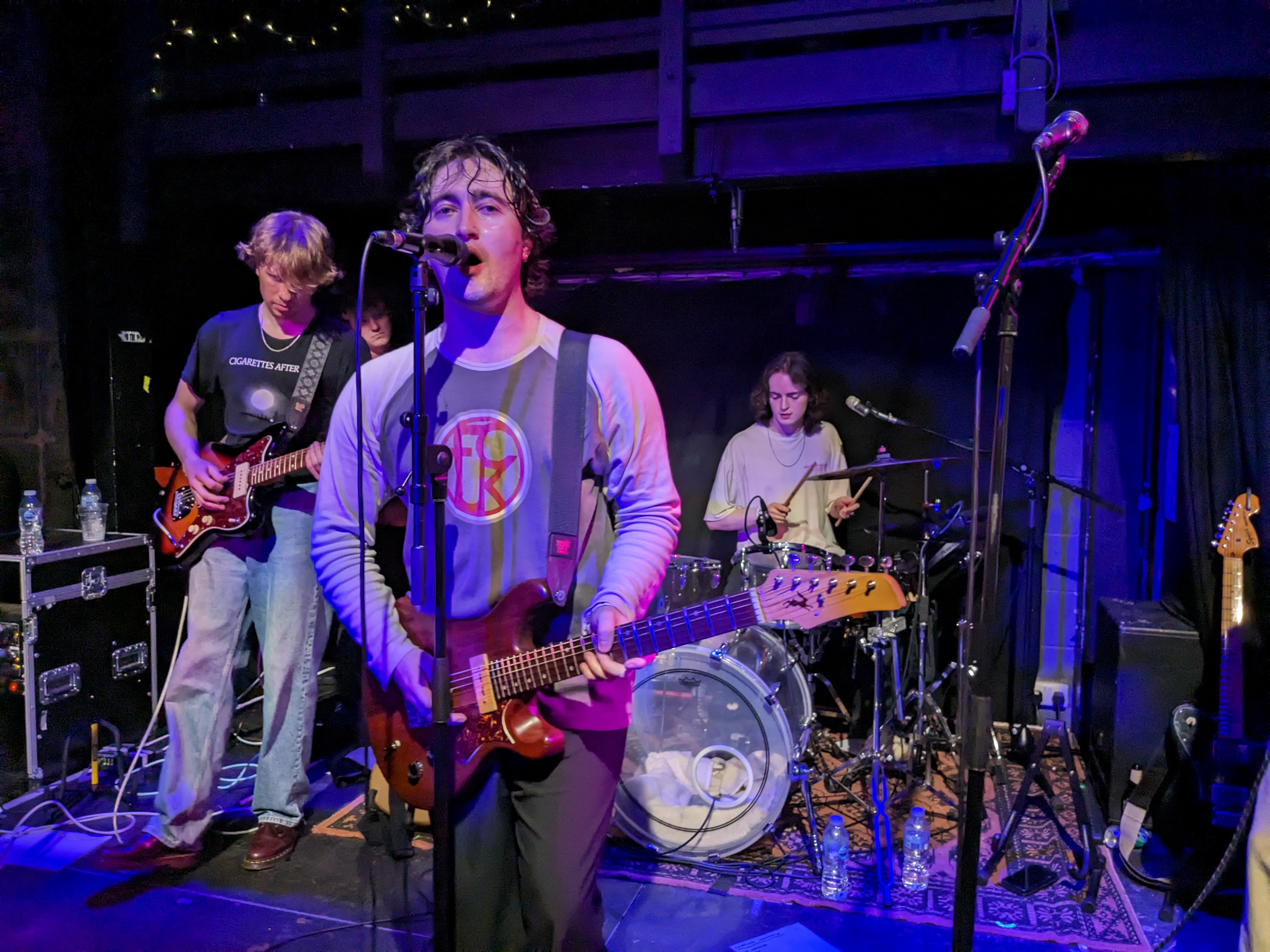 The ensuing 80 minutes is an odd mix of Courting’s contentious early punk and more recent, pop-facing indie rock tracks. Opener The Wedding is very much the latter, and despite a few earwormy lyrics (“oh, I’ve been a good boy on this track!”) never quite elevates beyond competent yet flavourless rock. The former, epitomised in a stroppy rendition of Tennis, was much better received, although had issues of its own – when there’s no melody for distraction, spoken lyrics like “You’re a night in the Holiday Inn / I’m a breakfast bar with an unusual toasting conveyor belt” just won’t cut it. What’s more, Murphy-O’Neill doesn’t even serve up a juicy Scouse accent. Instead we get the posh southern boy voice popularised by pre-2023 Black Country, New Road and, lacking that band’s immense musicality or lyrical genius, Courting end up sounding like a pale imitation of their Cambridge contemporaries.